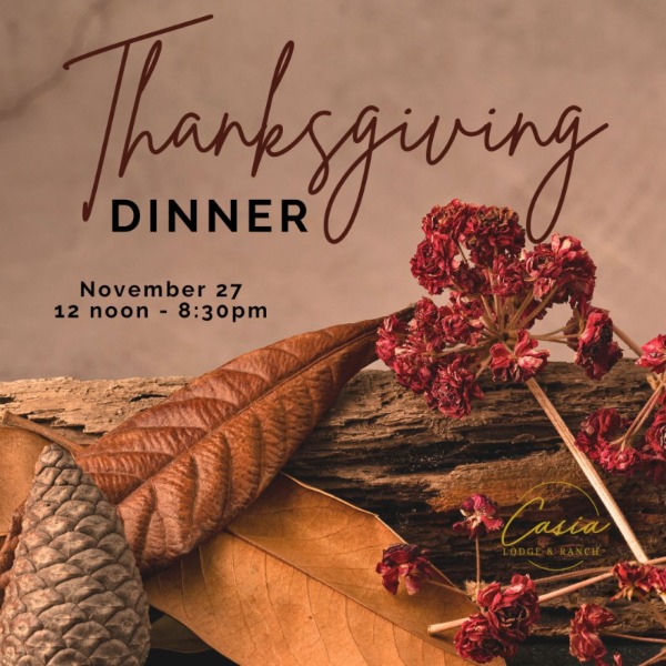 This Thanksgiving, savor breathtaking views, a table full of flavor, and the company of loved ones at Casia Lodge & Ranch. Begin with shareable snacks and small bites, then enjoy a traditional holiday feast with all your favorites. $62 per person...Read More